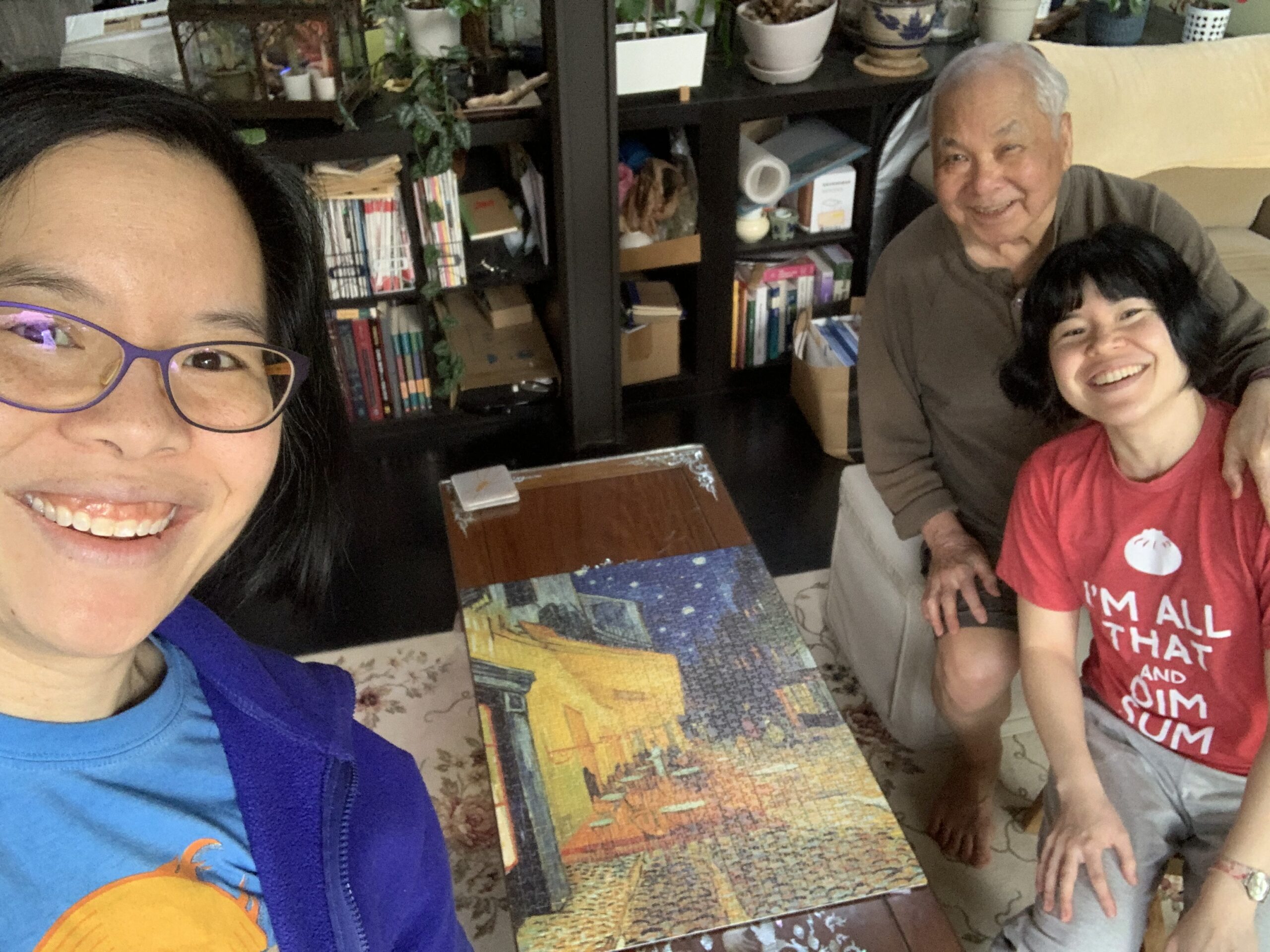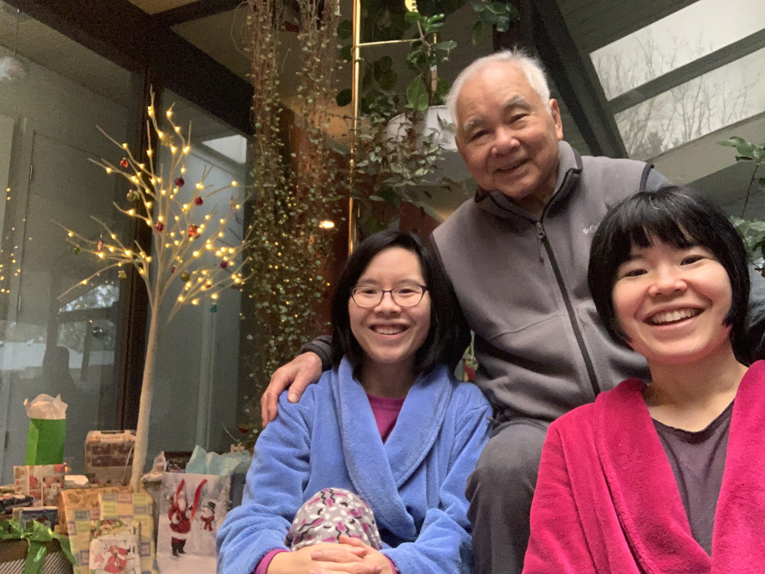 After graduating from college in Taiwan, YH came to the US in 1965 to pursue a Masters’ degree in aerospace engineering at Kansas State University. Hearing it was in Manhattan, he thought he was going to New York City! He arrived with just $1000 and worked hard to support himself and his family. He met his wife, Irene, while working in Boston as a waiter during summer break. They ultimately moved to Wichita, where he worked at Beech/Raytheon Aircraft for 33 years. He became a local fixture on the east side for his years of avid walking–initially from his home in Rockwood to work, and then after retirement on his route around Central and Rock with his trusty dog, Paco. Strangers would come up to him at Dillon’s to tell him they saw him every day on their way to work. The family lost Irene to depression in 1999, and he moved to Oregon to live with his daughters in 2019. During and since the pandemic, they completed too many jigsaw puzzles to count!